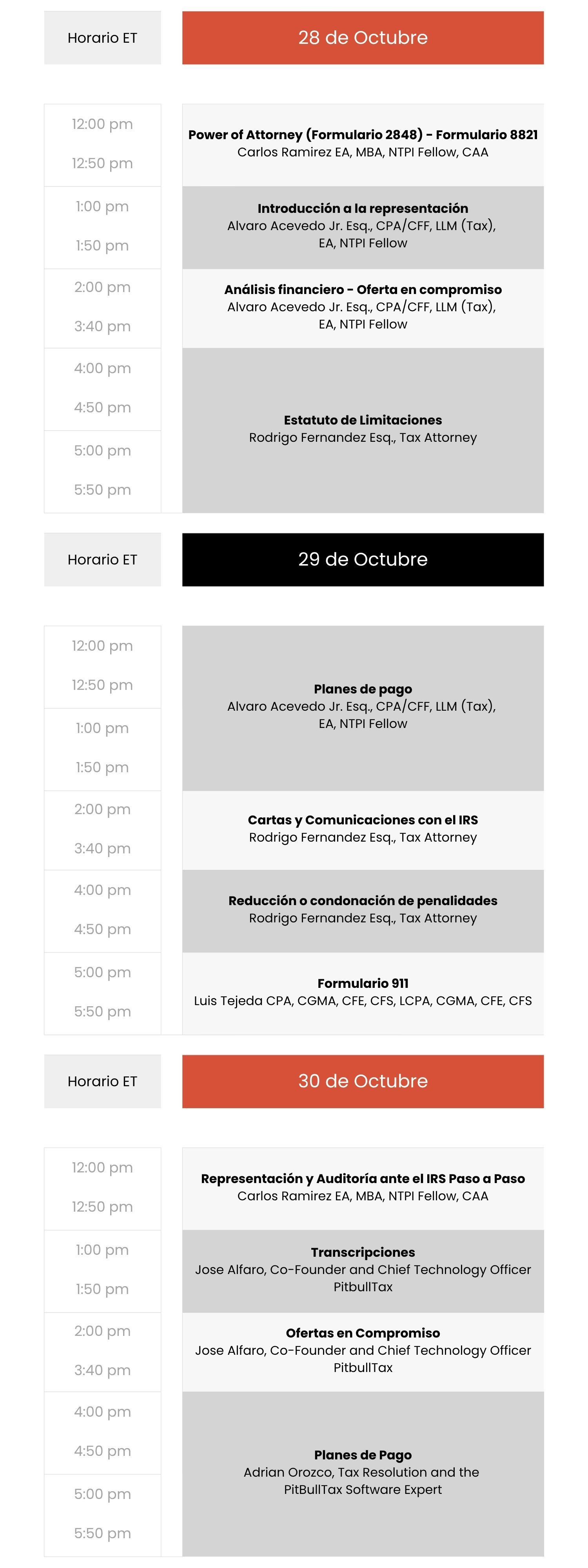 28, 29 y 30 de Octubre -