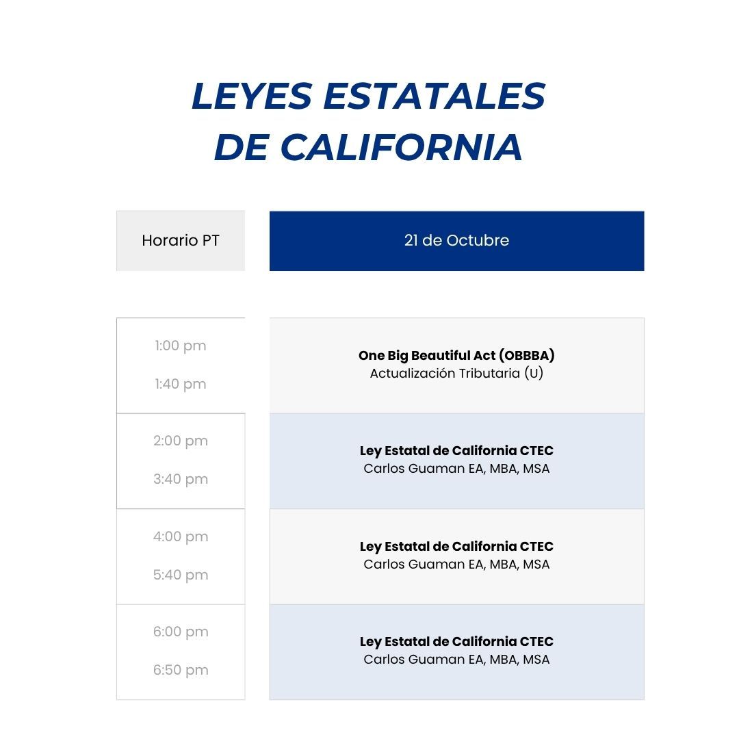 Este curso cumple con el requisito de CTEC para las 5 horas de Leyes Estatales de California (California State Tax Law) necesarias para los preparadores de California que necesiten renovar su Número CTEC.
