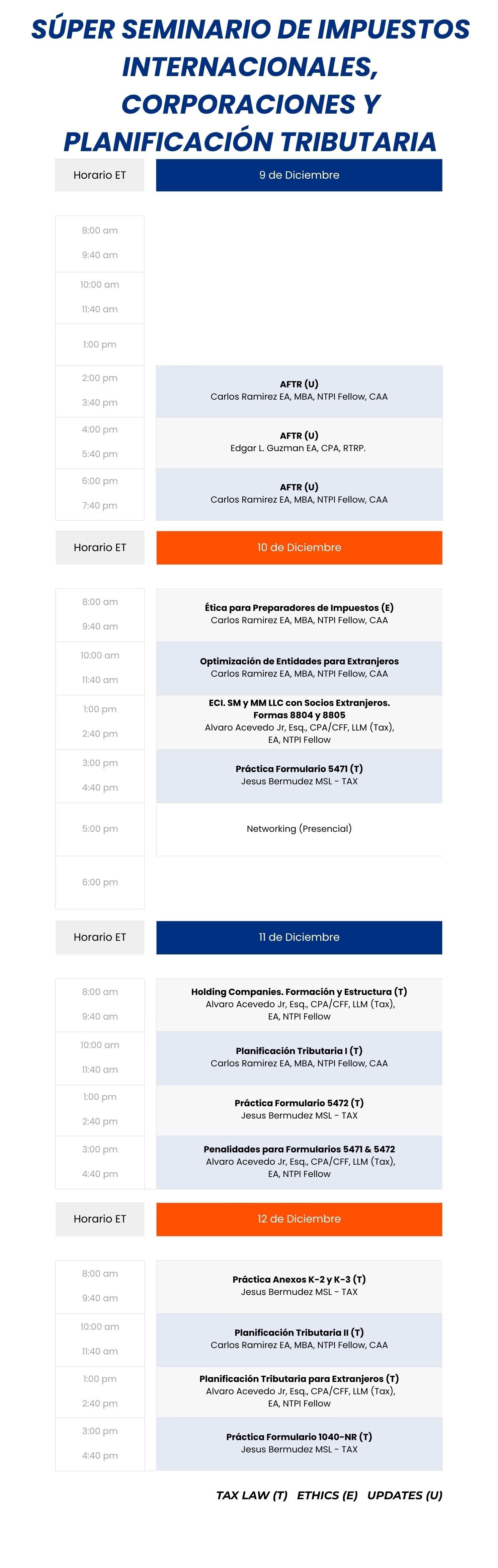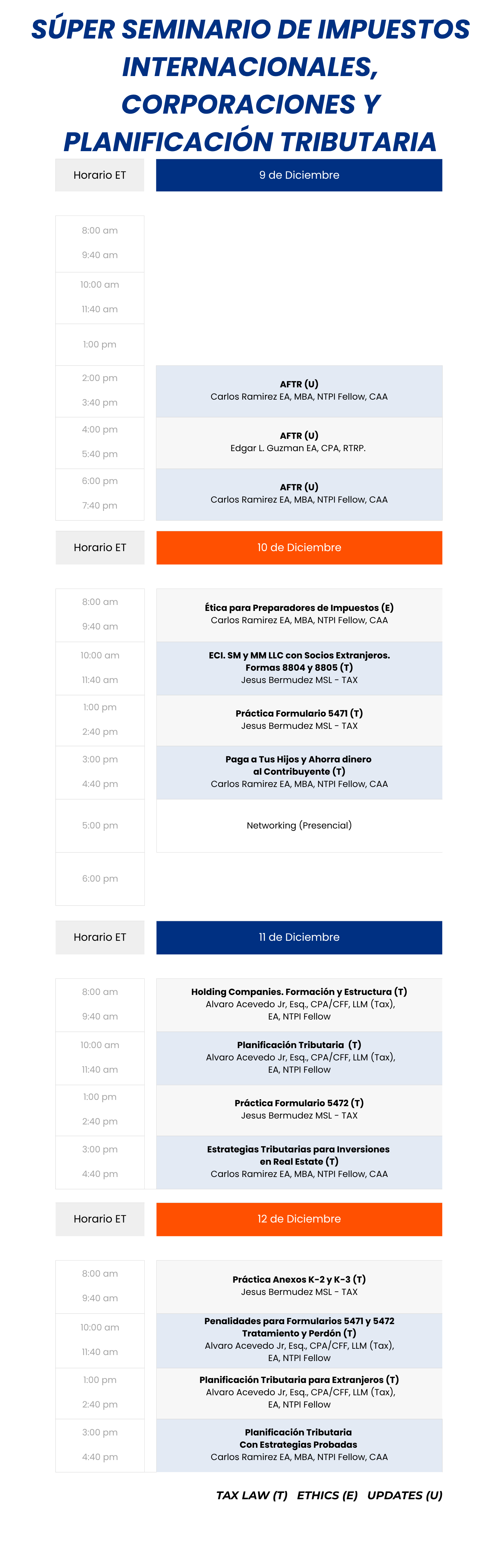 Para que tus horas de participación en el seminario virtual sean reportadas al IRS, es requisito indispensable que respondas a todas las preguntas interactivas (poll questions) que se presentarán durante las clases en los distintos días del seminario.