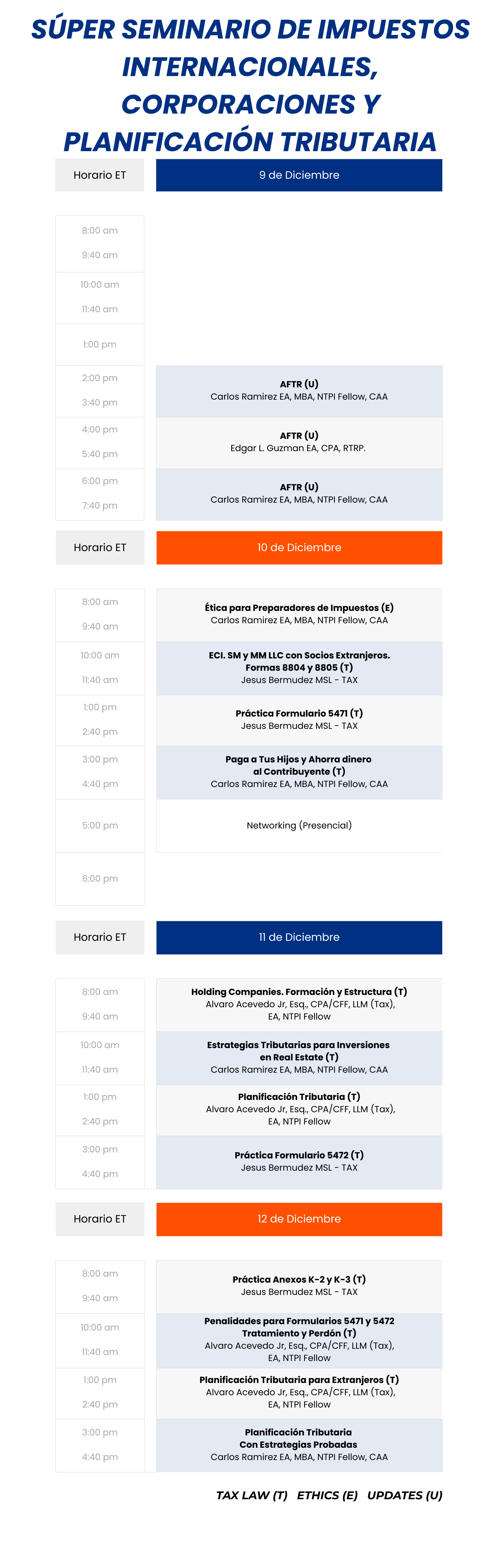 Para que tus horas de participación en el seminario virtual sean reportadas al IRS, es requisito indispensable que respondas a todas las preguntas interactivas (poll questions) que se presentarán durante las clases en los distintos días del seminario.